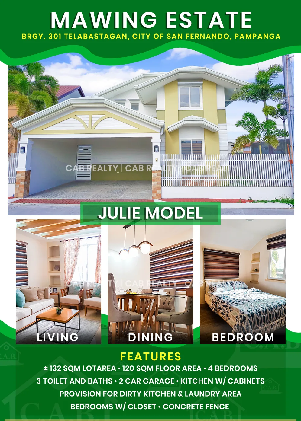 Located just along the highway of Olongapo-Gapan Road, Barangay Cabalantian, in the historical town of Bacolor, province of Pampanga. This housing community will takes you to the life you desired, surrounded with several malls like SM Pampanga, Robinsons Starmills, SM Downtown San Fernando, Waltermart, Vista Mall, SM Telebastagan, Jumbo Jenra etc., government offices are just 15 minutes drive, restaurants, and etc.